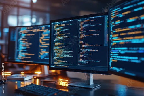 Programmers coding late night in office