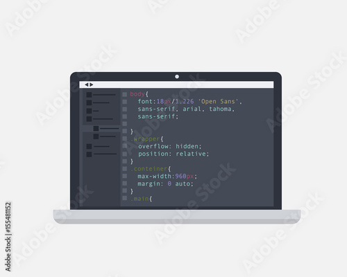 Programming and coding concept. Code on the screen laptop. Flat vector illustration