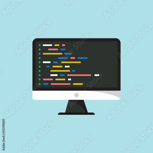Programming and coding on laptop screen. Simple notebook computer with code vector design. Flat design for web banners, web sites or printed materials.