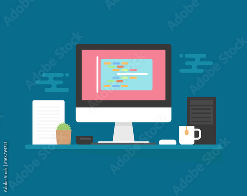 Programming and coding, Website development, Web design.Flat design modern vector illustration concept.