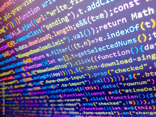 Programming code screen of software developer. Background of program code. Application source code background. Green binary code on computer screen texture background. Color coding on screen.