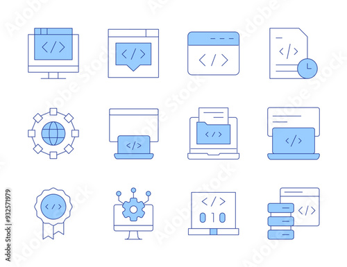 Programming icons. Line Duotone style, editable stroke. quality, time, programming, code, software, coding, world, web development, api