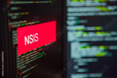 Programming language, Nullsoft Scriptable Install System inscription on the background of computer code.