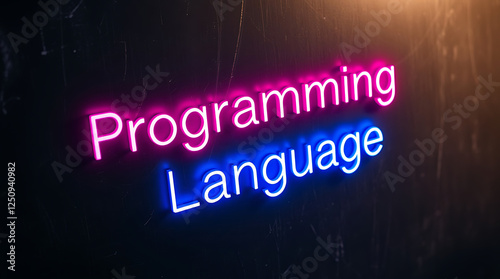 Programming Languages and High-Tech Development, coding, software development, neon sign, futuristic tech, programming concepts, JavaScript, Python, Java, C++, HTML, CSS, coding background.