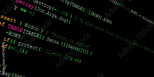 Programming screen of software developer. Program code background. Modern technology backdrop for advertisements.