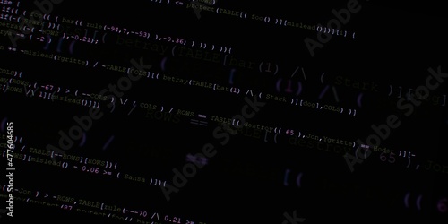 Programming screen of software developer. Program code background. Modern technology backdrop for advertisements.