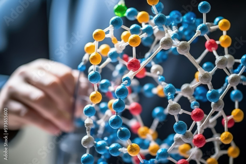 Protected Scientist Inspecting Test Tube: Molecular Display on Virtual Interface Background.Generative AI
