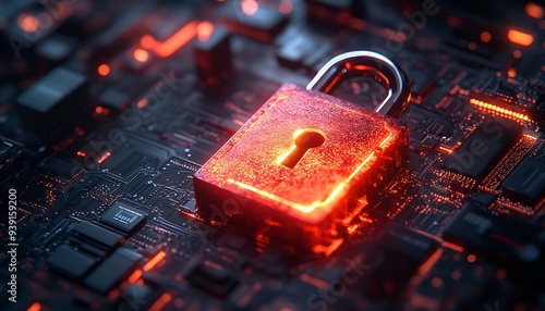 Protecting Data Networks with a Digital Padlock: A Deep Dive into Cybersecurity Technology on a Dark Blue Background