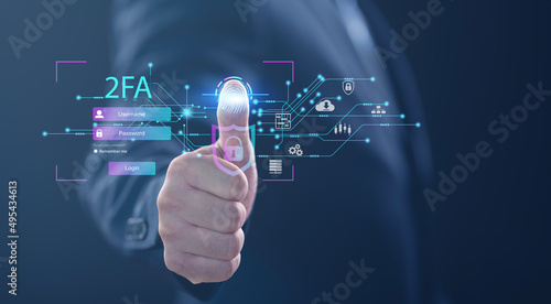 protection with 2Fa, Two-Factor Authentication, Cybersecurity privacy protect data. internet network security technology. Encrypted data. Personal online privacy. Cyber hacker threat..