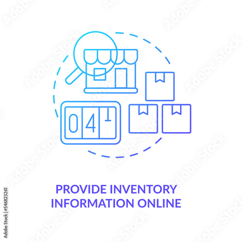 Provide inventory information online blue gradient concept icon. Customer loyalty. Find new clients in retail abstract idea thin line illustration. Isolated outline drawing. Myriad Pro-Bold font used
