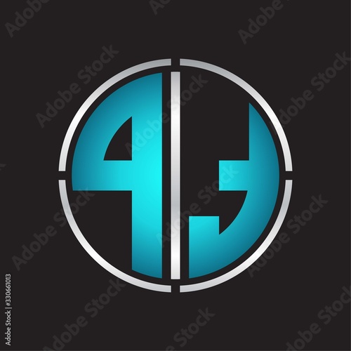 PT Logo initial with circle line cut design template on blue colors