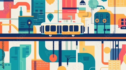 Public transit map flat design front view urban planning animation.