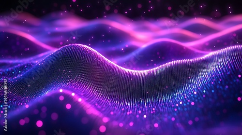 Pulsating quantum data streams, vibrant waves flowing through an intricate circuit grid, glowing pathways in neon purple and cyan tones, surrounded by abstract luminous particles,