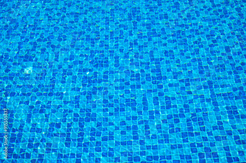 Pure blue water in the pool with light reflection