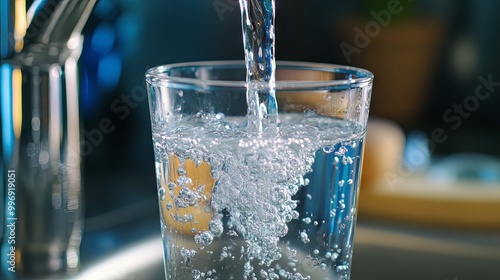 Purified water flows in a stream into a glass