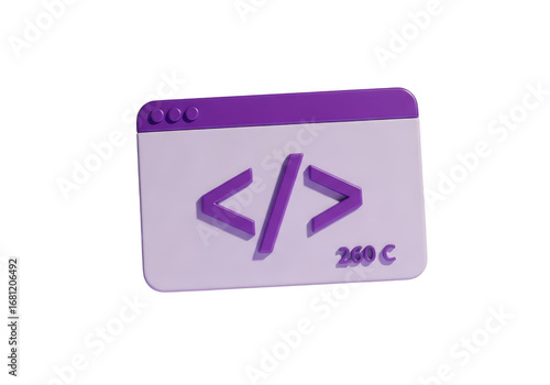 Purple coding symbol on a digital interface isolated on transparent background