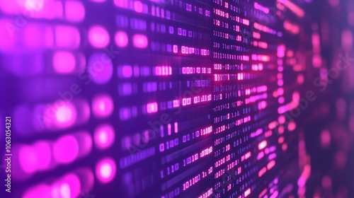Purple matrix background with flowing binary code, a visualization of digital data streams in cyberspace
