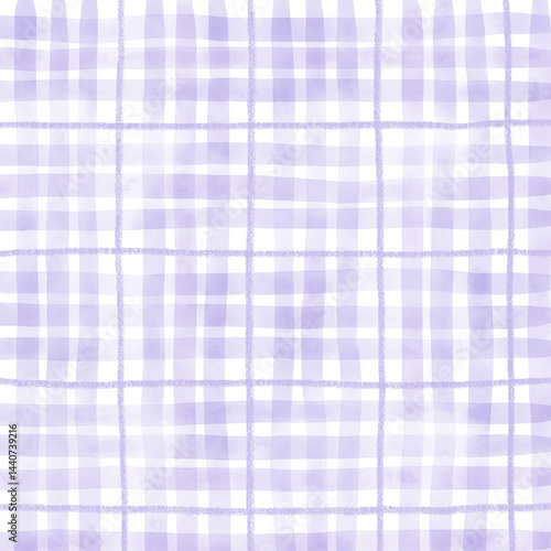 Purple Plaid Tartan Gingham Check Hand Drawn Background Pattern Overlay