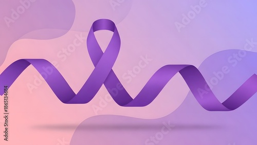Purple ribbon on a pink and purple background symbolizing awareness and support