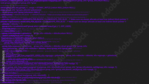 Purple screen coding hacker concept animation with glitch. Programming code typing error. Big data and Internet cyber attack. Programming code abstract. Blockchain concept, computer digital code
