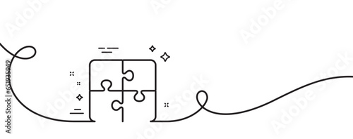 Puzzle line icon. Continuous one line with curl. Engineering strategy sign. Puzzle single outline ribbon. Loop curve pattern. Vector