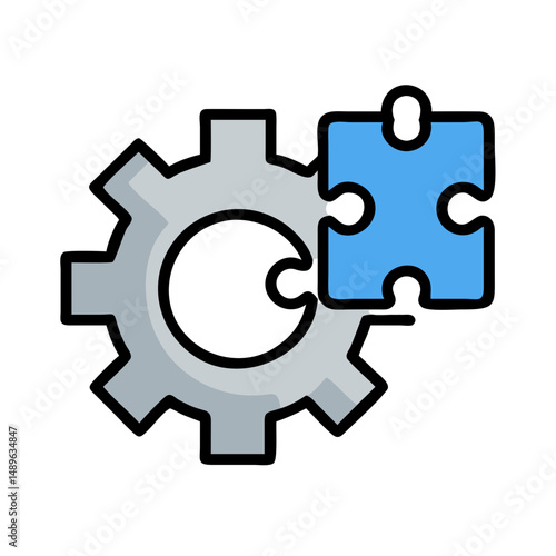 Puzzle Piece Gear Icon Representing Problem Solving and Technical Integration