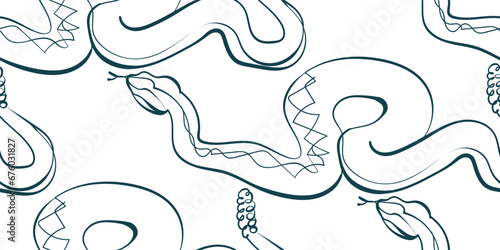 python snake nature wildlife artistic seamless ink vector one line pattern hand drawn