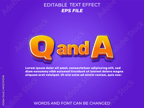 Q and A text effect 3d editable text. vector template