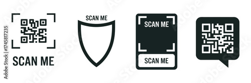 QR Code Set with Scan Me Text – Vector Template Featuring Multiple Frames and Icons for QR Code Scanning, Modern Digital Design and User Interaction Elements