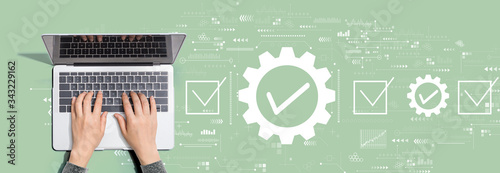 Quality control approval with person using a laptop computer
