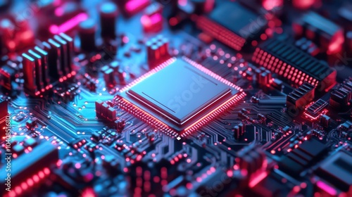 Quantum computer, large data processing, database concept. CPU isometric banner. Central Computer Processors CPU concept.Digital chip