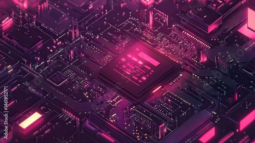 Quantum computer, large data processing, database concept. CPU isometric banner. Central Computer Processors CPU concept.Digital chip
