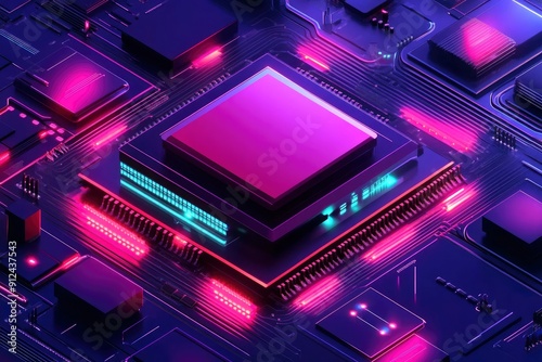 Quantum computer, large data processing, database concept. CPU isometric banner. Central Computer Processors CPU concept.Digital chip with generative ai