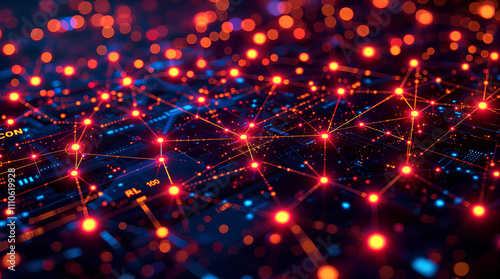 Quantum computer technologies concept,Seamless Block Data Connection Network,Block validation in the blockchain,Abstract Blockchain Network Background
