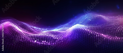 Quantum computer technology concept. Deep learning artificial intelligence. Big data algorithms visualization for business, science, technology. Waves flow.