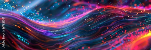 Quantum Computing, a colorful abstract design with flowing data patterns and quantum nodes, showcasing the interactive nature of quantum computing