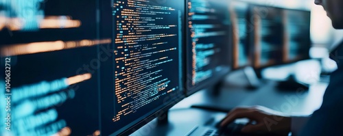 Quantum computing algorithm debugging, floating code blocks, high-tech office, digital tools