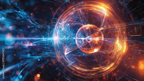 Quantum computing design with dynamic energy flows, quantum gates, and sophisticated algorithms displayed on a high-tech interface