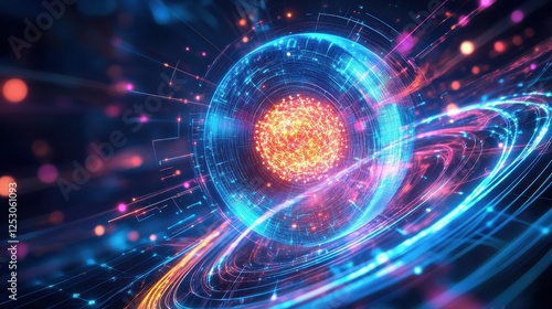 Quantum Core Glowing Under Swirling Light Grids