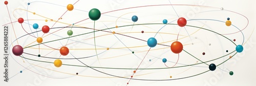 Quantum mechanics atom model with color coded orbitals representing varying energy levels