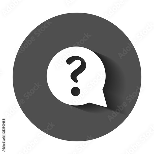 Question mark icon in flat style. Discussion speech bubble vector illustration with long shadow. Question business concept.