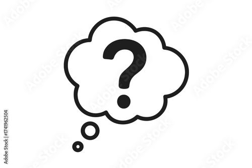 Question mark in thought bubble vector icon. Thinking, doubt, uncertainty concept. Problem solving, query, solution symbol. FAQ, help, support, communication sign. Ask logo.
