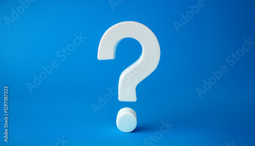 Question mark on blue background. 3D rendering. FAQ and QA. Problem solution.