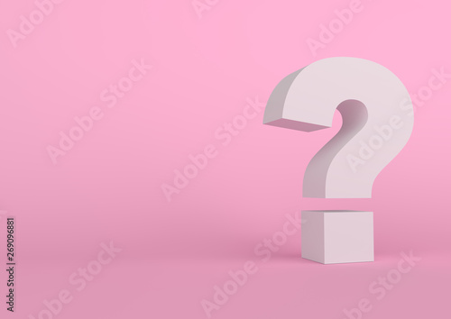 Question mark on pink background with shadow in pastel colors. Minimalism concept . 3d render illustration