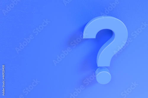 question mark on the plane 3d wall in blue with space to add content