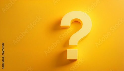 Question mark on yellow background. 3D rendering. FAQ and QA. Problem solution.