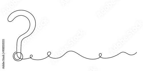 Question mark one line art, hand drawn asking sign, idea continuous contour. Query FAQ concept, finding answer. Editable stroke. Isolated. Vector illustration