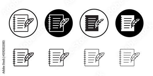 Quill pen and notebook page icon vector logo set collection for web app ui