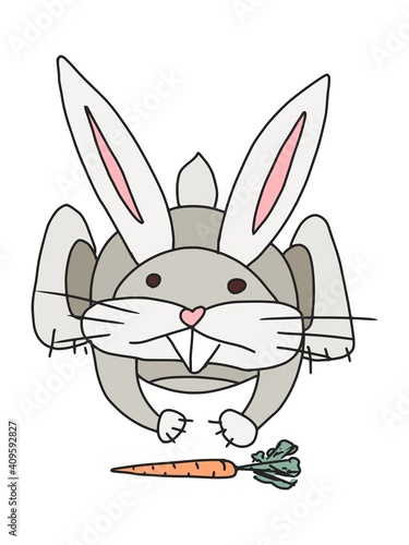 rabbit climbs for carrots. vector doodle sketch