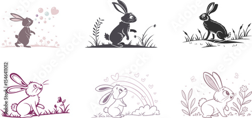 rabbit playing in the field set vector illustration